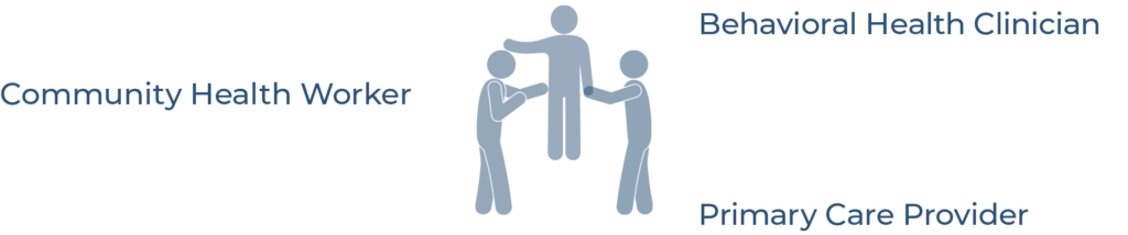 The TEAM UP staffing model includes a role for an integrated Behavioral Health Clinician (BHC) team member who partners with the Primary Care Provider (PCP) and the Community Health Worker (CHW) to deliver comprehensive services to patients and families.
